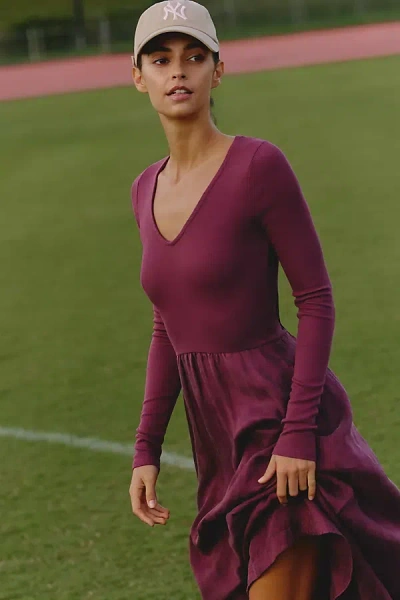 Long-sleeve Mixed Rib Maxi Dress In Brown