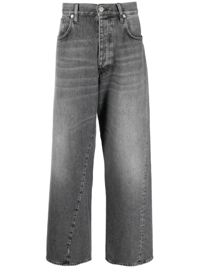 Wide-leg Wool Twill Trousers In Grey In Black