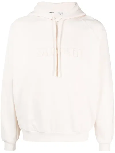 Classic Embroidered Logo Sweatshirt With Drawstring Hood For Men In White