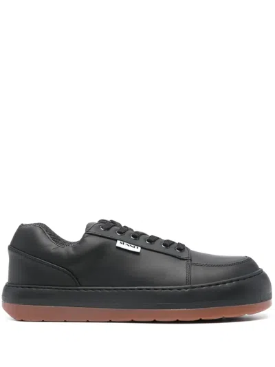 Panelled Slip-on Leather Sneakers In 黑色