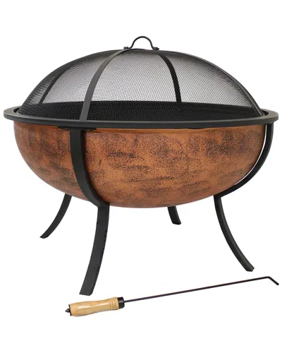 34in Fire Pit Cast Iron With Rustic Finish Wood-burning Fire Bowl In Orange