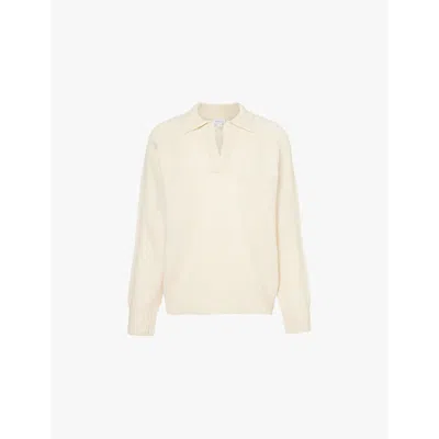 Womens Ecru Relaxed-fit Polo-collar Wool-knit Jumper