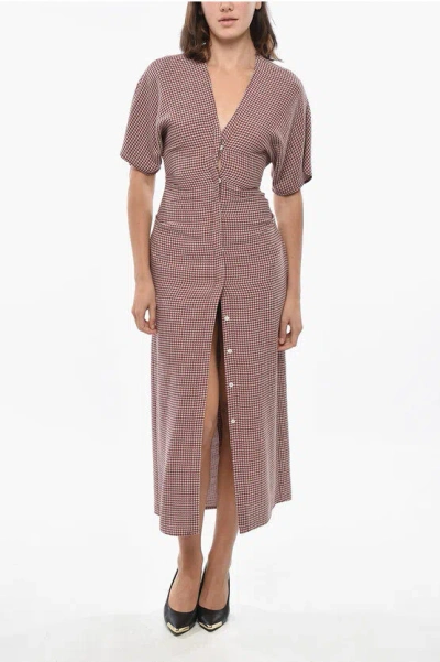 Houndstooth Patterned Wool Blend Shirt Dress In Multi