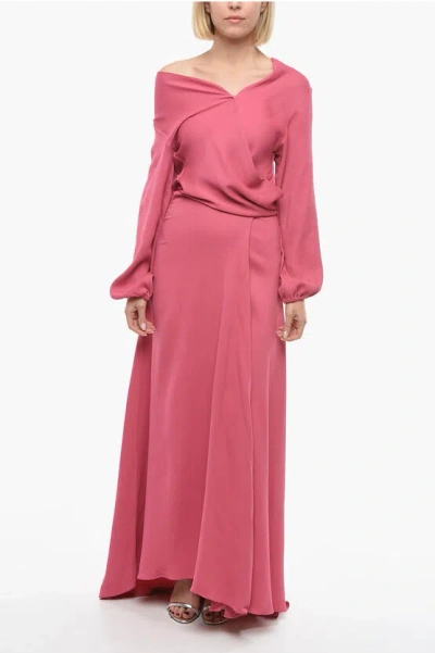 Viscose-crepe Grebseh Long Dress With Cut-out Detail In Pink