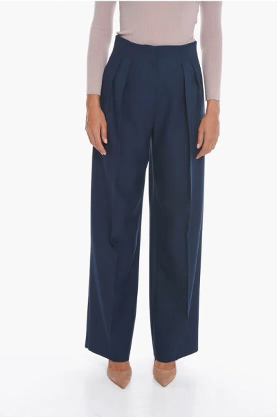 Front-pleated Trousers With Wide-leg In Blue