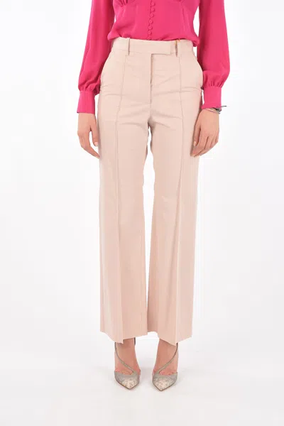 Front Pleated Flared Cotton Pants In Pink