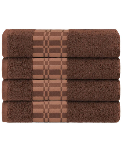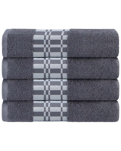 Larissa Cotton 4pc Bath Towel Set With Geometric Embroidered Border