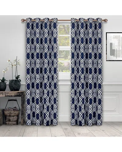 52x96 Decorative Quatrefoil Embroidered Sheer 2pc Curtain Panel Set In Blue