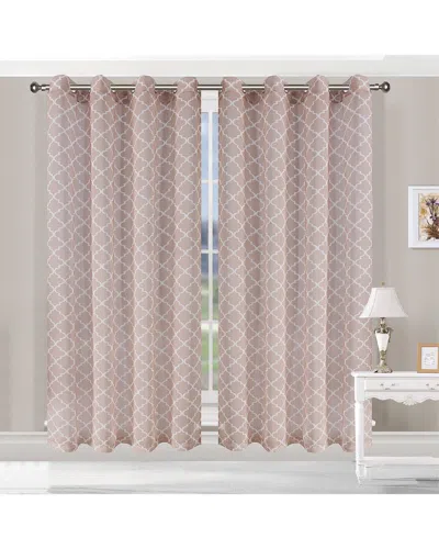 52x96 Trellis Sheer Grommet 2pc Curtain Panel Set In Beige