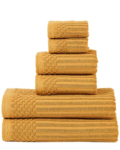 Highly Absorbent 6pc Solid And Checkered Border Towel Set In Yellow