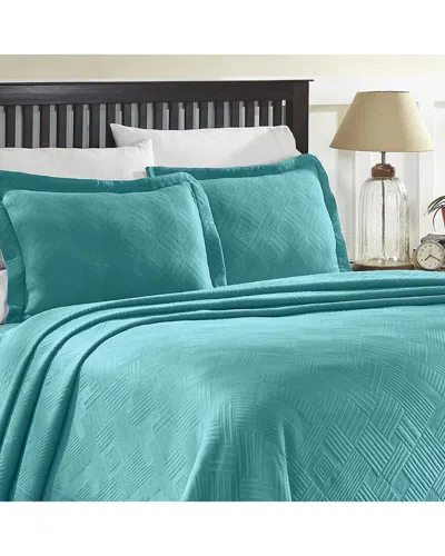 Jacquard Matelasse Cotton Medallion Bedspread Set In Blue