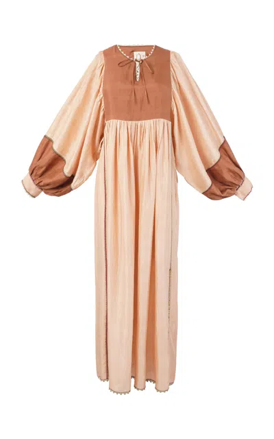 Serafina Pink Clay Silk Maxi Dress In Orange