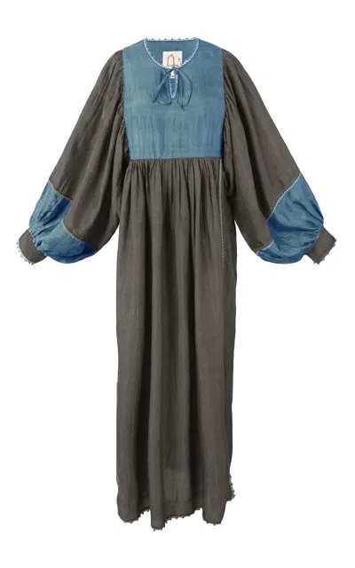 Serafina Indigo Sea Silk Maxi Dress In Gray