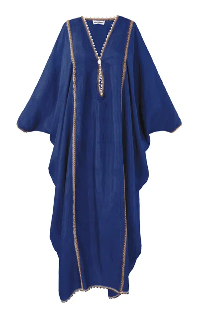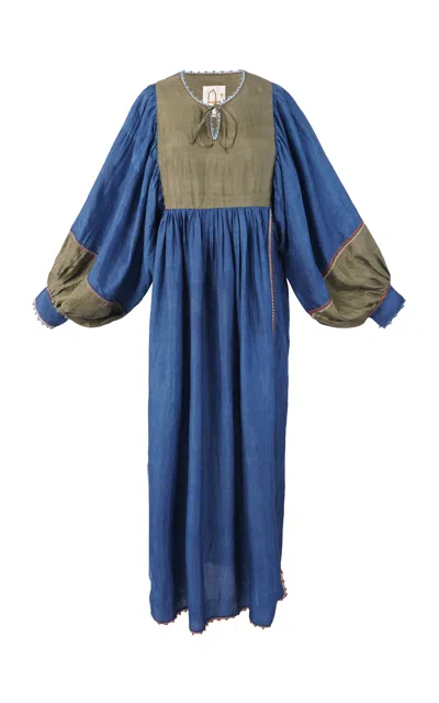 Serafina Spring Cloud Linen Maxi Dress In Blue