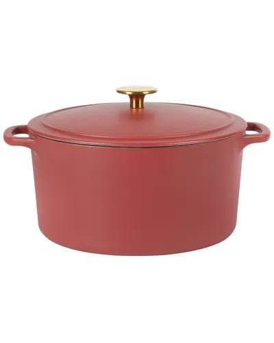 Millau 5.5 Quart Enameled Cast Iron Dutch Oven With Lid In Matte Brick With Rose Gold Knob In Red
