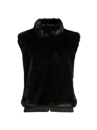 Women's Faux Rex Rabbit Vest In Black