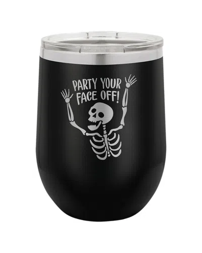 Party Your Face Off. Black Insulated Stemless Tumbler With Lid