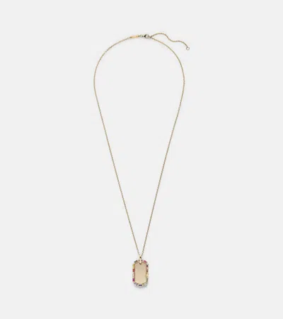 Frenesia Bar 14kt Gold Necklace With Rhodolite And Diamonds In Pink