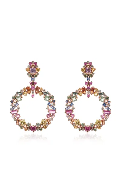 Ella Rainbow 18kt Rose Gold Earrings With Diamonds And Sapphires In Multicoloured