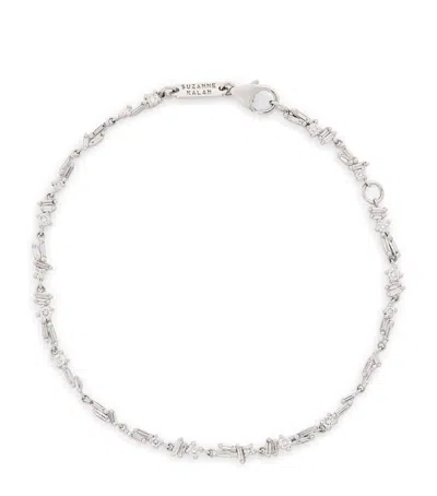 White Gold And Diamond Fireworks Three-row Tennis Bracelet In Silver