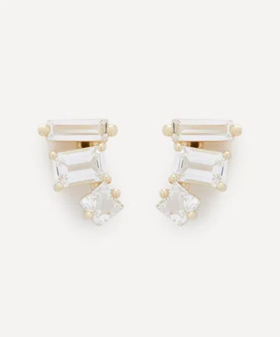 14ct Gold Triple Mixed Shape White Topaz Stud Earrings In Silver
