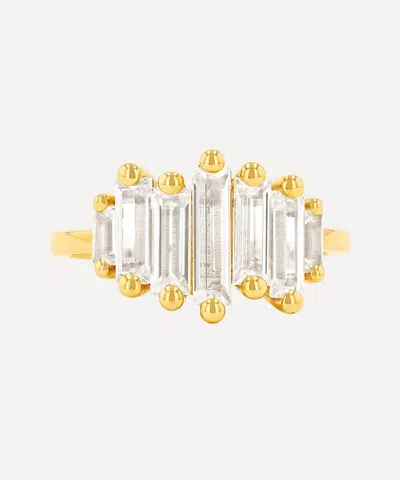 14ct Gold Triple Mixed Shape White Topaz Stud Earrings In Silver