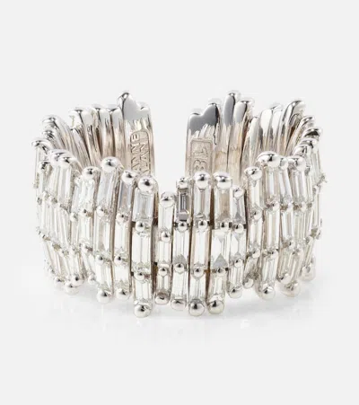 18k White Gold Fireworks Short Stack Diamond Ring In Metallic