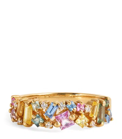 Audrey 18kt Gold Ring With Sapphires And Diamonds In Rainbow