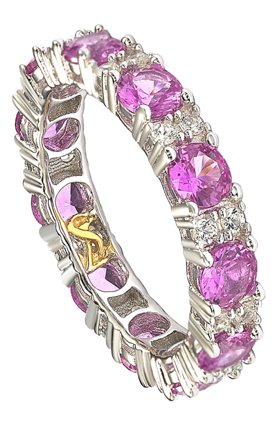 Sterling Silver Pink Sapphire And Diamond Accent Eternity Pave Ring In Purple