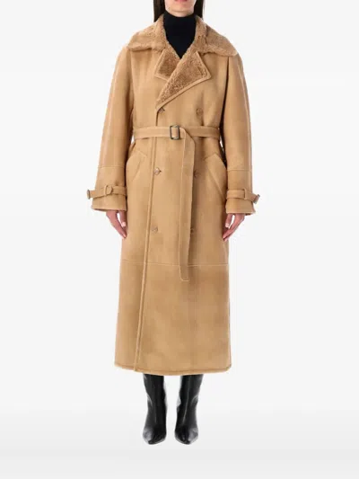 Sword S.w.o.r.d. 6.644 Long Shearling Coat Beige In Brown