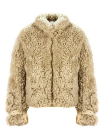Sword S.w.o.r.d. 6.644 Long Shearling Coat Beige In Brown