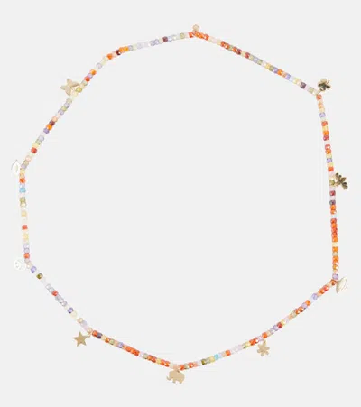 14kt Gold Beaded Charm Bracelet With Zircon In Multicoloured
