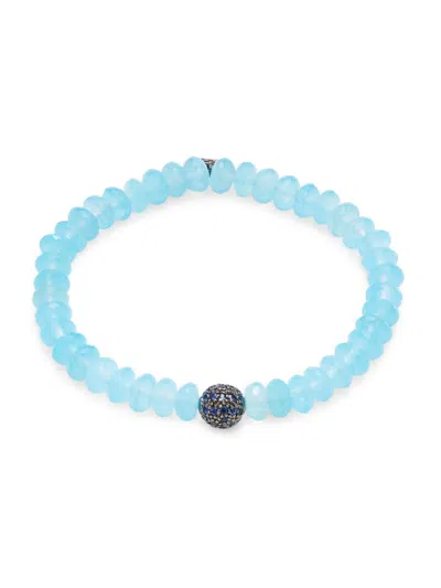 Women's 14k White Gold, Black Rhodium, Chalcedony & Sapphire Beaded Bracelet