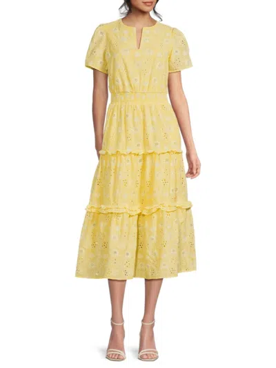 Women's Spread-collar Button-front Midi Dress In Mango Slice