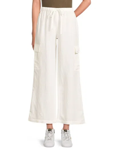 Women's Linen Blend Wide Leg Pants In Star White