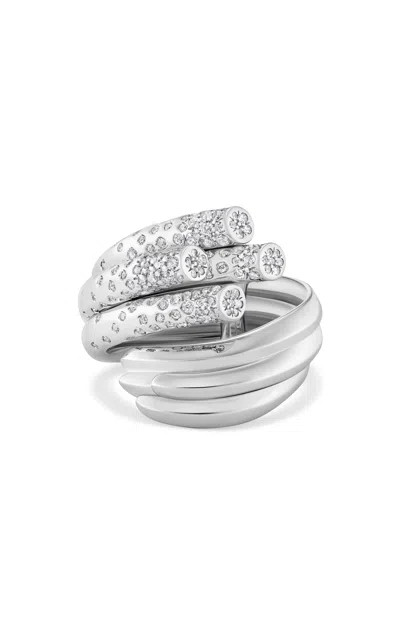 18k White Gold Zorae Ring; White Gold Paved With Diamonds. Large Swirl Version In Metallic