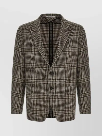 Square Pattern Blazer With Lapel And Pockets In Brown
