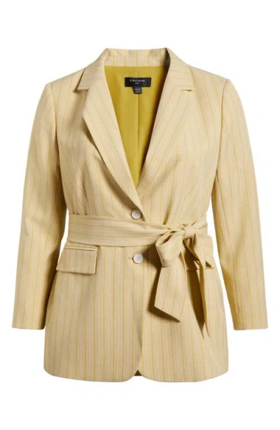 Pinstripe Belted Blazer In Ochre