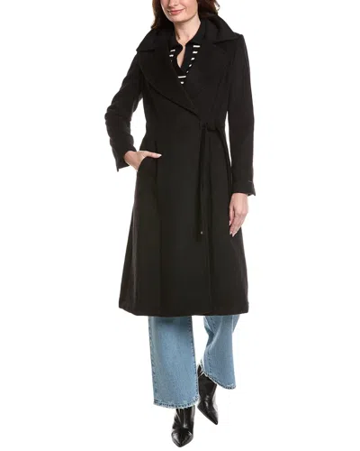 Wool-blend Wrap Coat In Black