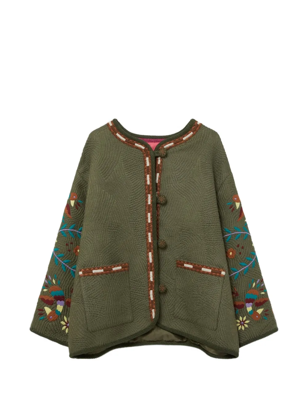 Embroidered Birds Jacket In Green