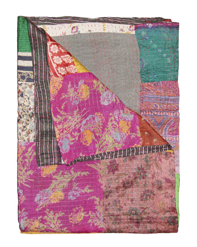 Natural Group Kantha Silk Throw In Pink