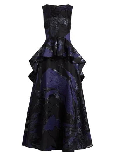 Women's Jacquard Peplum Ruffle Gown In Blue