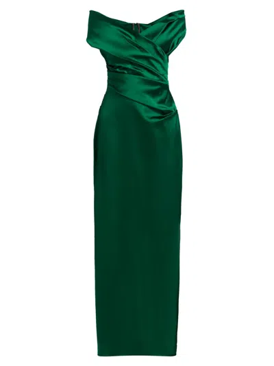 Women's Satin Off-the-shoulder Column Gown In Green