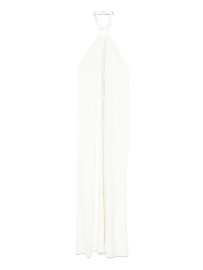 Meteora Tasseled Layered Crepe Halterneck Gown In White