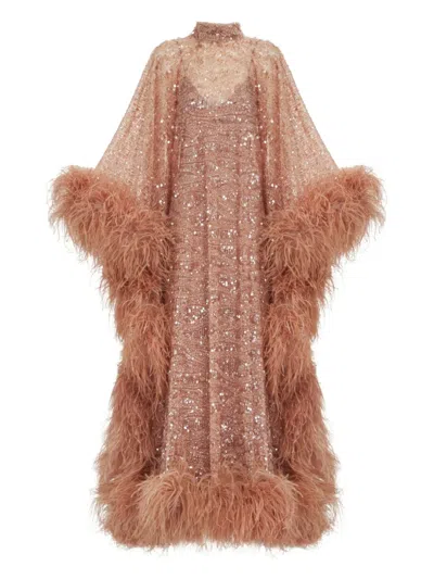 PENELOPE羽毛边饰真丝罩衫裙