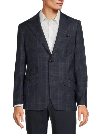 Men's Regular Fit Plaid Wool Blend Sportcoat In Navy