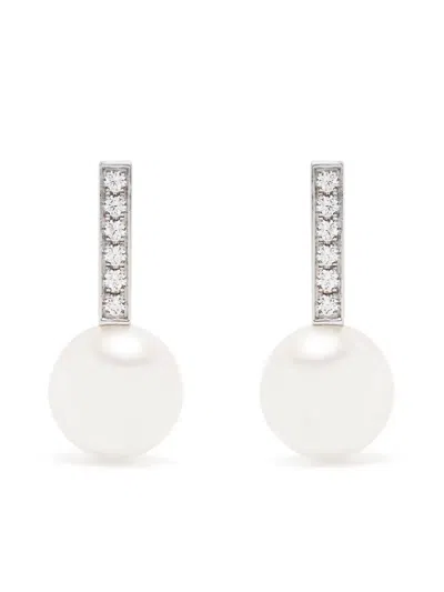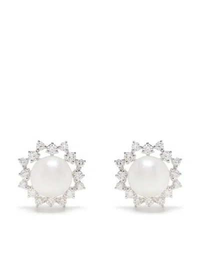 18kt White Gold Akoya Diamond Earrings In Silver