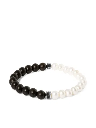 Gear Trio Pearl And Wood Beaded Bracelet In Black