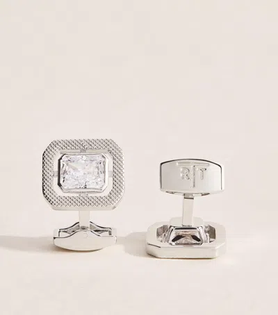 Rhodium-plated Cubic Zirconia Halo Round Cufflinks In Metallic
