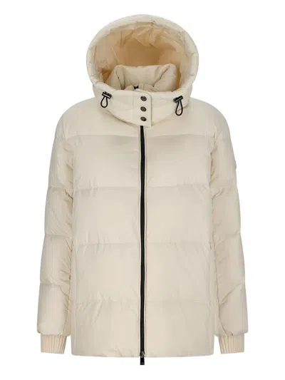Yumola White Jacket With Drawstring Hood And Logo Patch On The Sleeve In Ecofur Woman